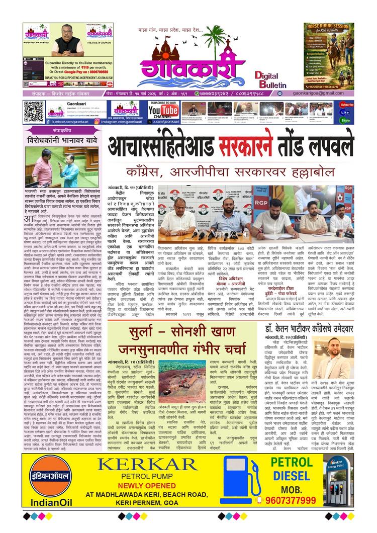 कोमुनिदाद आणि आल्वारा जमिनीतील बांधकामे नियमीत करणार गांवकारी, दि.१२ (प्रतिनिधी) सर्वोच्च न्यायालयाने सरकारी आणि कोमुनिदाद जमीनीतील बेकायदा बांधकामे नियमीत करण्यास तीव्र हरकत घेतली आहे. असे असूनही, मुख्यमंत्री डॉ. प्रमोद सावंत…