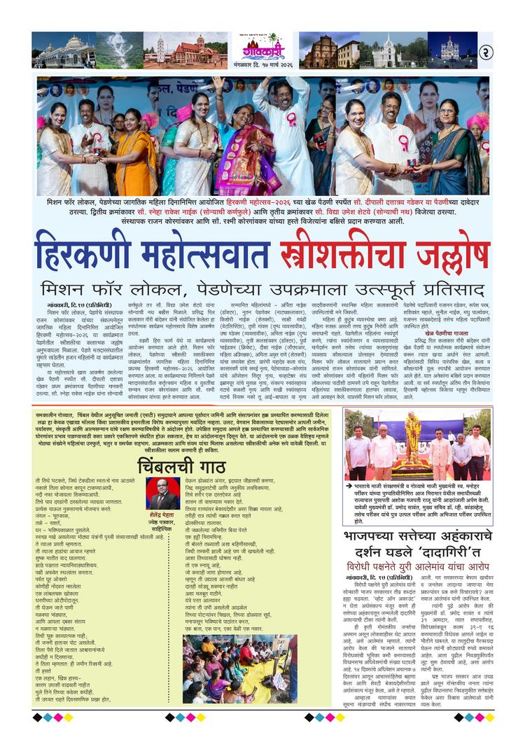 धारगळ डेल्टीन कॅसिनो टाउनशिपवरून सरकारवर टीका गांवकारी, दि. १३ (प्रतिनिधी) पेडणे तालुका आणि संपूर्ण उत्तर गोव्यावर दूरगामी परिणाम करू शकणाऱ्या धारगळ-पेडणे येथील नियोजित डेल्टीन कॅसिनो टाउनशिप प्रकल्पासाठी सामाजिक परिणाम अभ्यास…
